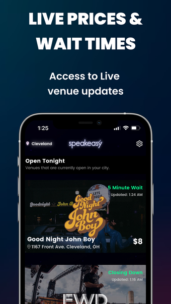 Speakeasy - LIVE es una aplicación diseñada para facilitar el acceso a bares y discotecas. Con esta herramienta, los usuarios pueden visualizar tiempos de espera en tiempo real, así como precios de entrada, lo que les permite planificar su noche de manera más eficiente. Además, la app ofrece la opción de comprar entradas VIP que permiten saltarse la fila, mejorando la experiencia de salida.